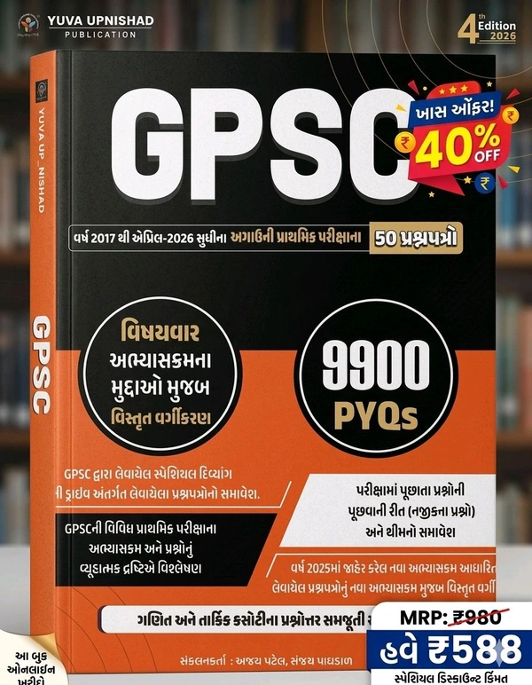 GPSC PYQs 9900 વર્ષ 2017 થી 2026 સુધી ના પ્રસ્નપત્રો જવાબ સાથે 💥40%off આજના દિવસ માટે ખાસ Off